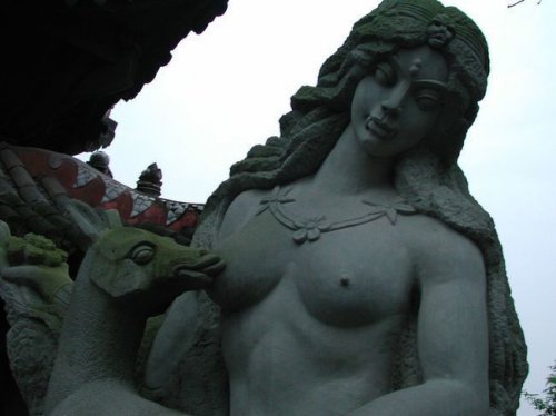Кейт Мосс, занимающаяся йогой. Золотая статуя куплена неизвестным поклонником актрисы почти за 1.000.000 долларов США (Азия)