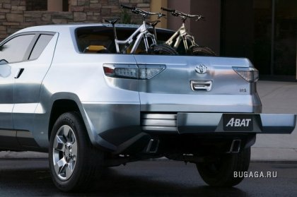 Пикап Toyota A-BAT должен понравиться не только каким-нибудь фермерам в качестве рабочей лошадки, но и молодежи – для путешествий, поездок на пикники. Кузов автомобиля имеет ряд возможностей для трансформации и много всяких креплений для различных видов груза – например, пары велосипедов.