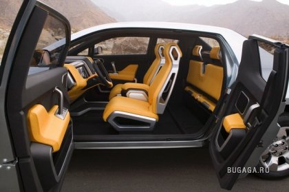 Все-таки хорошо трапециевидные формы приживаются на автмобилях, а особенно на внедорожниках. Конечно, тема может быть уже довольно сильно изъезжена за последние годы, но дизайнеры продолжают ее использовать и в новейших своих разработках. Внешность A-BAT разрабатывалась в соответствии с фирменной философией в дизайне - "Vibrant Clarity". Пикап получился с виду мощным, массивным и вполне собранным.