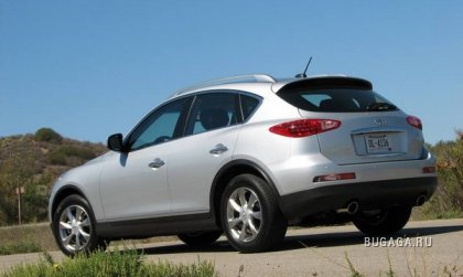 Внешний вид японского будущего не способен шокировать, но вот зато вызвать симпатию точно в состоянии. Передняя часть абсолютно точно напоминает седан G35, тогда как сзади наш подопытный – это слегка измененный FX. Так что каждый сможет выбрать свой собственный сценарий мутации – либо это седан почти стал большим внедорожником, либо внедорожник деградировал в направлении чистейшего седана. В любом случае, вид спереди с его изящными фарами и фирменными изгибами удался на славу, а вид сзади почти полностью скопировал неувядающий FX, насколько это возможно. При этом по бокам EX все же несколько приплющен, что делает его менее внушительным. Зато 17-дюймовые колеса хорошо вписываются в общую картину. Кстати, из сюрпризов есть еще и лакокрасочное покрытие этого кроссовера, которое позволяет не париться по поводу мелких царапин, оставляя их на откуп новейшему автомобильному лаку – последней разработке ученых в этой области.