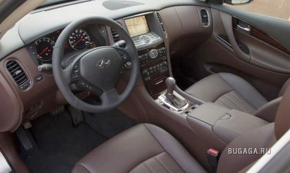 Если же техническая составляющая для вас значит гораздо больше, чем цвет кожи на ваших сидениях, то новенький EX не должен вас разочаровать. Под капотом у кроссовера компании Infiniti замечательный двигатель строения V6 с рабочим объемом в 3,5 литра. Его недюжинная мощность составляет 297 л.с., что в сочетании с пятиступенчатым “автоматом” способно заставить любого американца одобрительно кивать и давить на газ. Европейцы, наверное, будут не так оптимистичны, до последнего надеясь увидеть дизельную модификацию. Зато в список вещей, от топлива не зависящих, попадают интеллектуальные системы для помощи при переключении передач, которые носят весьма мудреные названия – DSM (Drive Sport Mode), DRM (Downshift Rev Matching) и ASC (Adaptive Shift Control). Не будем забывать и об умном полном приводе под названием ATTESA E-TS.