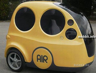 В то время, как многие серьезные автомобильные производители сосредоточились на разработке электромобилей, компания MDI пошла совсем другим путем и недавно представила плод своей работы – малютку Airpod. Этот крошечный, игрушечного вида автомобиль сможет разгоняться до 70 км/ч и оснащен двумя двигателями (по одному на каждое заднее колесо), работающими на сжатом воздухе, и на одной заправке (этим самым сжатым воздухом), которая стоит копейки, он сможет проехать 220 км. Такой автомобиль не очень расчитан на дальние поездки, скорее, на относительно недалекие поездки по городу. Помимо водительского, в нем еще два пассажирских сиденья, а вместо руля у него джойстик. По заявлению компании, на европейских дорогах это чудо техники появится уже в 2009-м году.