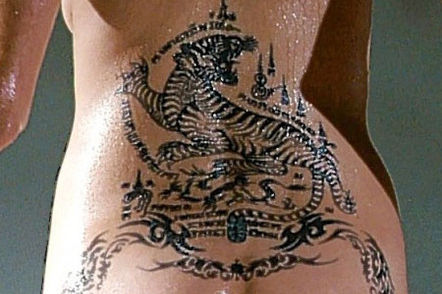 4. Татуировка буддиста Тай молит о защите: «Да убояться тебя твои враги, да пребудут с тобой все богатства твои, красота твоя сравнится с Апсарой, и да защитит он тебя, где бы ты ни был». Данная тату имеет не только сакральное значение, но и закрывает собой слово «смерть», сделанное ранее в этом же месте на японском языке.