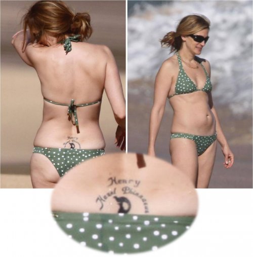 Любимица публики до того, как Сандра Буллок отобрала этот титул, Джулия Робертс, является ещё одной звездой, которая не кажется частью любителей татуировок. Это всё равно, что вы узнали, что ваша мать сделала себе татуировку – это круто или неловко? Возможно из-за этого большинство людей не знают о её татуировке. К счастью, автора этого списка абсолютно не волнуют татуировки, поэтому главное, чтоб татуировка инициалов детей и мужа Робертс на нижней части спины нравилась ей самой.