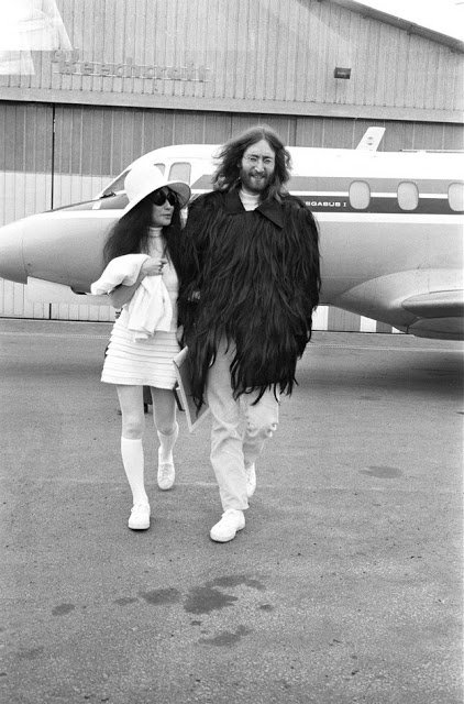 Джон Леннон и Йоко Оно в аэропорту Ле Бурже, Париж, 1969 г.
