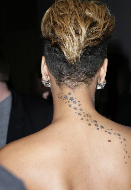 У Рианны на теле всего 22 татуировки, которые ей делает нью-йоркский тату-мастер, также сделавший тату Адель, Джастину Биберу и некоторым известным реперам.