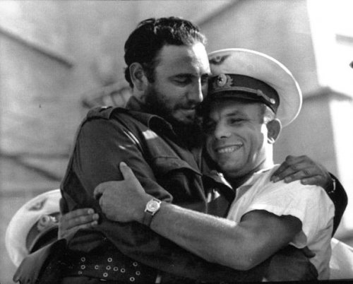 6. В июне 1961 года Фидель Кастро встретился в Гаване с Юрием Гагариным, советским космонавтом, первым человеком, совершившим полёт в космос. Фотография обнимающихся команданте и легендарного космонавта стала одной из самых знаменитых фотографий Фиделя Кастро.