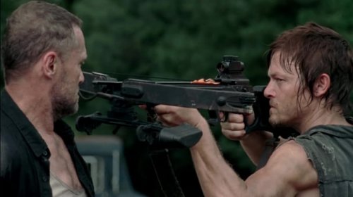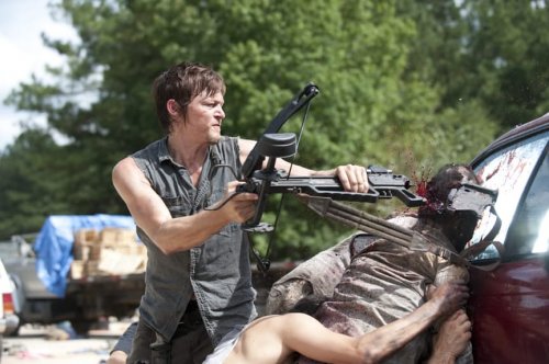 В сериалах о том, как человечество продолжает выживать после полнейшего краха цивилизации, нас всегда ждет море крови и трупов. А когда апокалипсис наступает из-за восстания мертвецов, будьте готовы к целому полчищу зомби, которых необходимо убить! В группе Рика полно хороших солдат, преданных делу и команде, - Мишон с ее катаной, сам Рик с его верным топором и еще много женщин и мужчин, хорошо умеющих пользоваться ножом. И есть Дэрил с его арбалетом. С самого начала шоу младший Диксон уверенно входит в состав 3-5 самых злейших врагов зомби. Кроме умелого использования своего арбалета, Дэрил также удивительным образом применяет все, что попадается ему под руку (например, багажник или цепи).