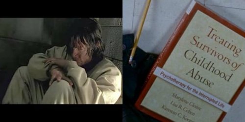 Друзья Дэрила и даже зрители Ходячих мертвецов знают не все о прошлом южанина. Очевидно, он очень переживает за всю группу, особенно за самых младших ее членов и тех, кто в меньшей степени способен за себя постоять. Как сказали бы психологи, это можно объяснить тем, что он сам был жертвой насилия и пренебрежения. В одной из серий Мерл срывает с брата рубашку, обнажая шрамы на его спине. Мерла в свое время постигла та же судьба от рук их отца алкоголика, но он не знал, что его младшего брата дома тоже избивали. Дэрила так часто били и оскорбляли в подростковом возрасте, что ему очень тяжело довериться и расслабиться в новом окружении. Так в Александрии он долго держится поодаль, и ему непросто почувствовать себя по-настоящему в безопасности. В фильме Диксон даже носит с собой реальную книгу «Как вести себя с перенесшими в детстве насилие» от авторов Marylene Cloitre, Lisa Cohen и Karestan Koenen.