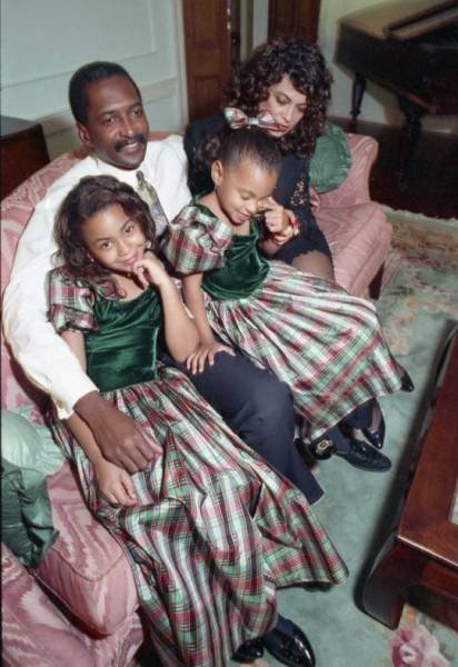 Бейонсе и Соланж Ноулз со своими родителями, 1990 г.