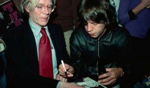 Мик Джаггер оставляет автограф для Энди Уорхола