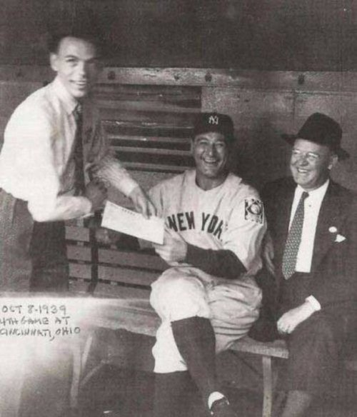 Фрэнк Синатра берёт автограф у звезды бейсбола Лу Герига