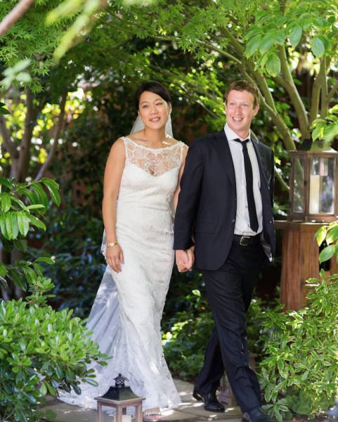 Марк и Присцилла в 2012 году организовали тайную свадьбу, о которой даже не сообщили своим гостям. В дом Марка в Пало-Альто было приглашено множество знаменитостей, чтобы отпраздновать окончание учёбы Присциллы в Калифорнийском университете. Внезапно пара предстала перед своими гостями в свадебных нарядах. Гостей угощали суши и барбекю прямо на заднем дворе дома. Кроме того, Марк подарил жене кольцо, дизайн которого разработал сам.