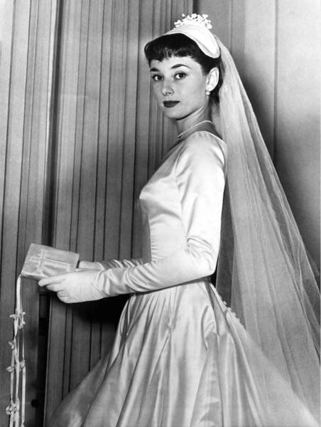 Одри Хепбёрн примеряет свадебное платье: она чуть не вышла замуж за будущего лорда Англии Джеймса Хэнсона. Свадьба была отменена в последнюю минуту, потому что Одри решила посвятить себя работе и карьере.