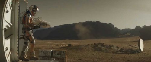 Для художественной достоверности съёмки некоторых эпизодов фильма проходили в иорданской пустыне Вади Рам, хотя её цвет всё равно не был таким красным, как в кино. А подавляющее количество сцен снимали в павильонах на зелёном фоне, после чего специалисты студии визуальных эффектов Moving Picture Company (MPC) доделали всю необходимую работу. Собственно, студия MPC и представила эти фотографии, демонстрирующие некоторые моменты съёмок фильма "Марсианин":
