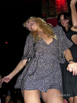 Выпив несколько коктейлей, Пэрис Хилтон полезла танцевать на стол. Отметим, что с тех пор, как Хилтон решила стать певицей, она танцует стриптиз с завидной регулярностью. В этот раз на Пэрис было очень короткое платье, которое все время задиралось и оголяло задницу в ее любимых розовых стрингах.