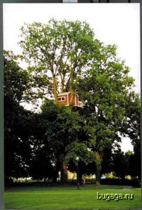 Woodpecker Hotel, Швеция. Добраться до этого домика, надвисшего над парком на высоте 13 метров можно только по веревочной лестнице.