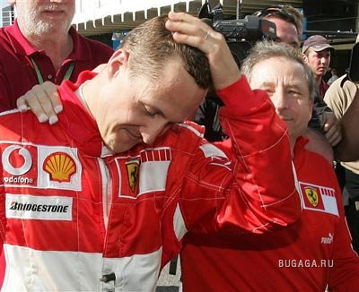 Шумахера со слезами на глазах провожает руководитель команды "Феррари" - Жан Тодт.