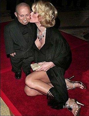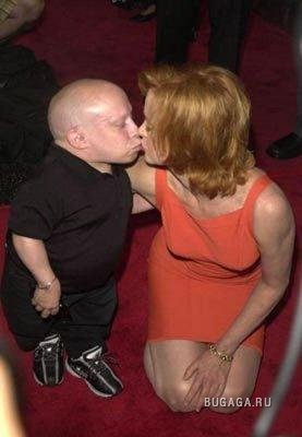 Актер Верн Тройер, сыгравший героя по имени Мини-Я в фильмах об Остине Пауэрсе, а также снявшийся в "Людях в черном" и "Гарри Поттере" в 2004 году женился на своей давней подружке фотомодели и преподавательнице йоги Женевьев Галлен, которая даже без каблуков выше его на метр с лишним…