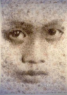 Одна из известных серий Куми, это шесть портретов разных людей, выполненных из надписей на кредитных карточках. Если рассматривать их издалека, то они выглядят как обычные графические работы. Но при ближайшем рассмотрении можно разглядеть имена, фамилии и колонки номеров.