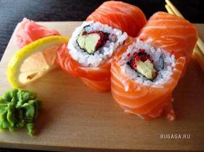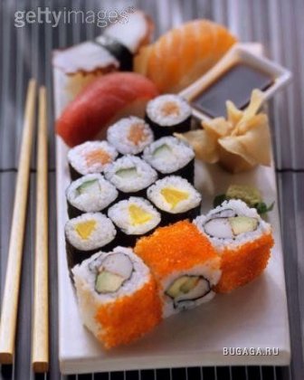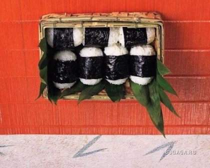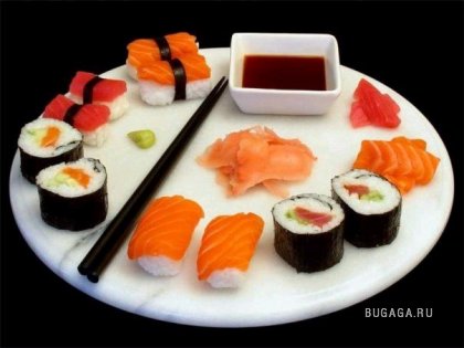 Вообще, иероглиф "суши" означает "маринованная рыба". Нужно отметить, что раньше рис в суши не ели - он использовался не только для еды, но и для хранения рыбы. Свежую рыбу нарезали на небольшие кусочки и слаживали в большую посуду с засоленным рисом. Таким образом, можно было хранить рыбу более года. Постепенно, рыбу доставали и готовили, а когда ее не оставалось - рис либо выкидывали, либо использовали повторно.