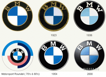 На первой эмблеме, принятой в 1917 г., был изображен вращающийся пропеллер. Однако эмблема казалась слишком сложной и мелкой, и к 1920 г. пропеллер был сильно стилизован. Круг от пропеллера разделили на четыре четверти, серебристо-белые сектора внутри черного ободка стали чередоваться с небесно-голубыми.