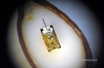 Эта скульптура расположилась на разрезанном пополам семени яблока.