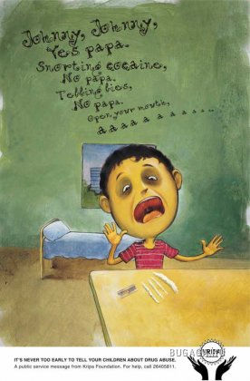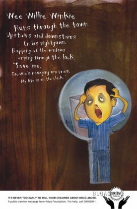 Индийское агентство Contract создало серию принтов для некоммерческой организации Kripa Foundation, в которых призывает родителей не беречь своих детей от рассказов о вреде наркотиков. Иначе их жизнь превратиться в черную сказку.Рассказать детям о наркотической зависимости нельзя «слишком рано».
