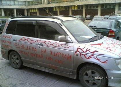Вдруг меня осиняет: а что, если машину взять и раскрасить, ну типа аэрография а-ля гжель или хохлома в антиправительственном стиле.