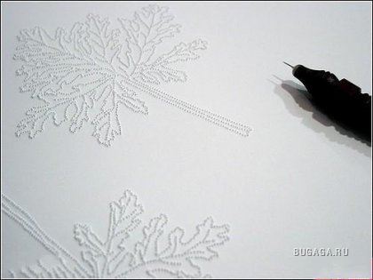 Принцип "рисования" понятен и прост, - одна дырочка, две, пять, двадцать пять, а потом - очень много дырочек, которые группируются в орнамент, либо же становятся буквами. С одной стороны, что может быть проще такого творчества? А с другой, - попробуй сам!