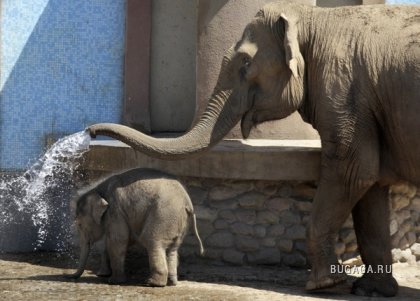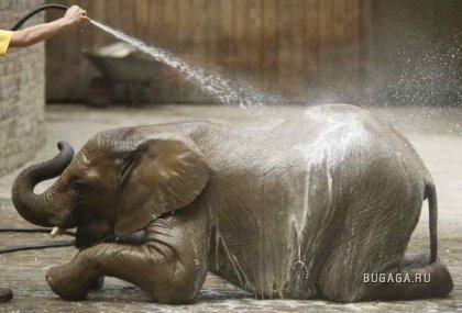 Служащие зоопарка города Вупперталь в Германии отмывают африканского слона.