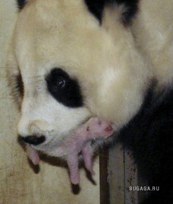 Мама-панда держит в зубах своего новорожденного детеныша, которому служащие тайского зоопарка Chiang Mai дали имя Lin Hui.