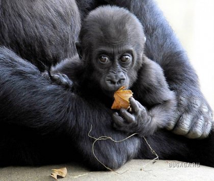 Две западные равнинные гориллы - Пол Донн (справа) и Фрэнк - исследуют разваленный кусок праздничного пирога, брошенный в вольер горилл 4 сентября в зоопарке Сан-Диего, Калифорния. Пирог, сделанный из риса, бамбука и банановой кожуры, был сделан в честь первого дня рождения Фрэнка - самого младшего в семье. В зоопарке Сан-Диего обитает 13 западных равнинных горилл.
