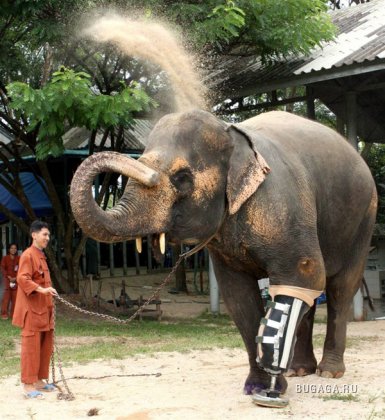 48-летний слон по кличке Мотала с недавно поставленным протезом ноги в специальной больнице для слонов в провинции Лампанг, расположенной к северу от Бангкока, Таиланд.