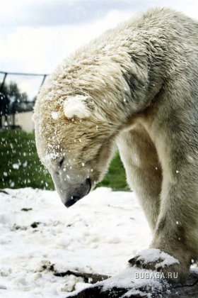 Белый медведь по кличке Джелле гуляет по снегу в зоопарке голландского города Нуэнен. Специальный снегомет делает снег, чтобы создать в вольере полярных медведей имитацию их естественной среды.