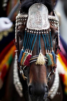 Конь в украшениях во время фестиваля Алка в городе Синь на юге Хорватии. Алка представляет собой турнир по верховой езде, который с 1715 года проходит каждый август в хорватском городе Синь, в ознаменование победы над Османской Империей.