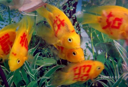 Рыба-попугай с татуировками плавает в аквариуме зоомагазина в Сямыне на юго-востоке китайской провинции Фуцзянь. На тело рыбы с помощью лазера наносятся китайские иероглифы удачи или просто цветочные узоры, чтобы увеличить стоимость рыб.