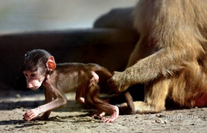 Детеныш гамадрила в зоопарке Парк Лекок в Монтевидео, Уругвай.