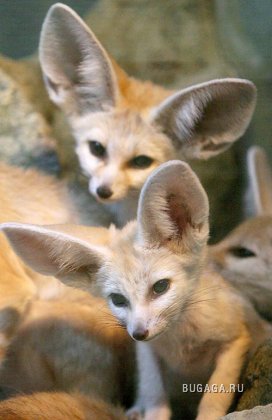 Детеныши фенека жмутся друг к другу в зоопарке Кракова, Польша.