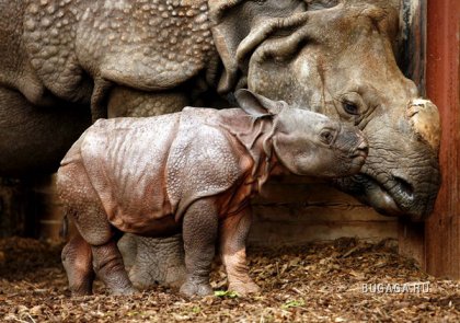 Детеныш носорога Сето Паитала, что означает на непальском «белая нога», стоит рядом с матерью Пураной в закрытом вольере в зоопарке Нюрнберга, Германия.