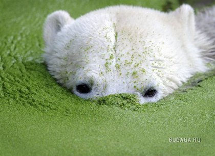 Знаменитый белый медведь Кнут плывет через ряску в зоопарке Берлина. Фанаты Кнута с нетерпением ждут его встречи с самкой Джианной. Работники зоопарка надеются, что Кнут и Джианна сойдутся и дадут потомство.