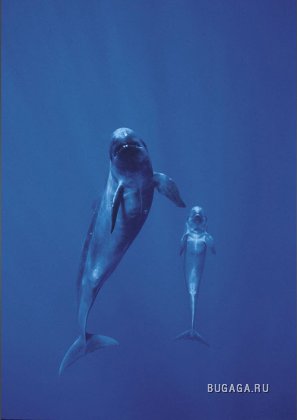 Малая касатка с детенышем, гавайский центр сохранения китов-горбачей, Гавайи. Рассказывает фотограф Дуг Перрин: «Плавая с этими прекрасными дельфинами, названными малой касаткой из-за сходства со своими крупными сородичами, я обернулся и увидел, как эти двое смотрят на меня, как будто я самое странное существо, которое они когда-либо видели».