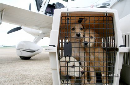 Щенки лабрадора перед полетом из Монтгомери в Тампе. Этих щенят спасли от усыпления члены благотворительной организации Pilots N Paws.