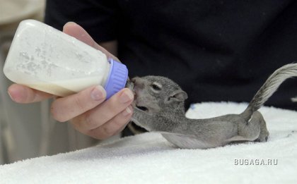 6-недельная древесная белка кормится из бутылочки в Stanislaus Wildlife Care Center.