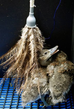 Утята под страусиными перьями щетки для пыли в Честерском Зоопарке, на севере Англии. Работники зоопарка используют щетку как своего рода суррогатную мать, для птенцов, вылупившихся из брошенных в гнезде яиц.