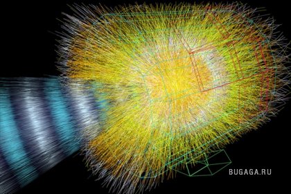 Физически все это выражается следующим образом: при разгоне пучков протонов и их столкновении, возникают частицы, масса которых превышает первоначальную массу этих протонов.