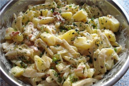 Очищенный картофель отварить, воду слить, обсушить его, приправить маслом, посыпать мелко нарубленным чесноком, сушеной зеленью, на 1—2 мин прикрыть крышкой и тут же подавать к столу.