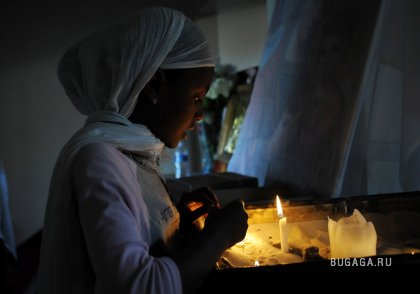 10-летняя Эден Хайлу зажигает свечу в Эфиопской православной церкви в Денвере, штат Колорадо, 1 апреля. (Matt McClain/Getty Images)