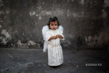 Девочка-ангел ждет начало процесси в Taxco, Мексика, 1 апреля. (AP Photo/Alexandre Meneghini)