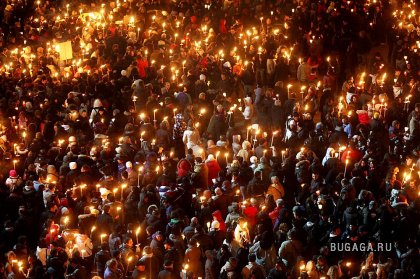Тысячи людей собрались чтобы вспомнить о жертвах землетресения, произошедшего ровно год назад в Л'Акуиле, Италия. Землетресение разрушило почти весь город и унесло 308 жизней. (Alessandro Di Meo/European Pressphoto Agency)